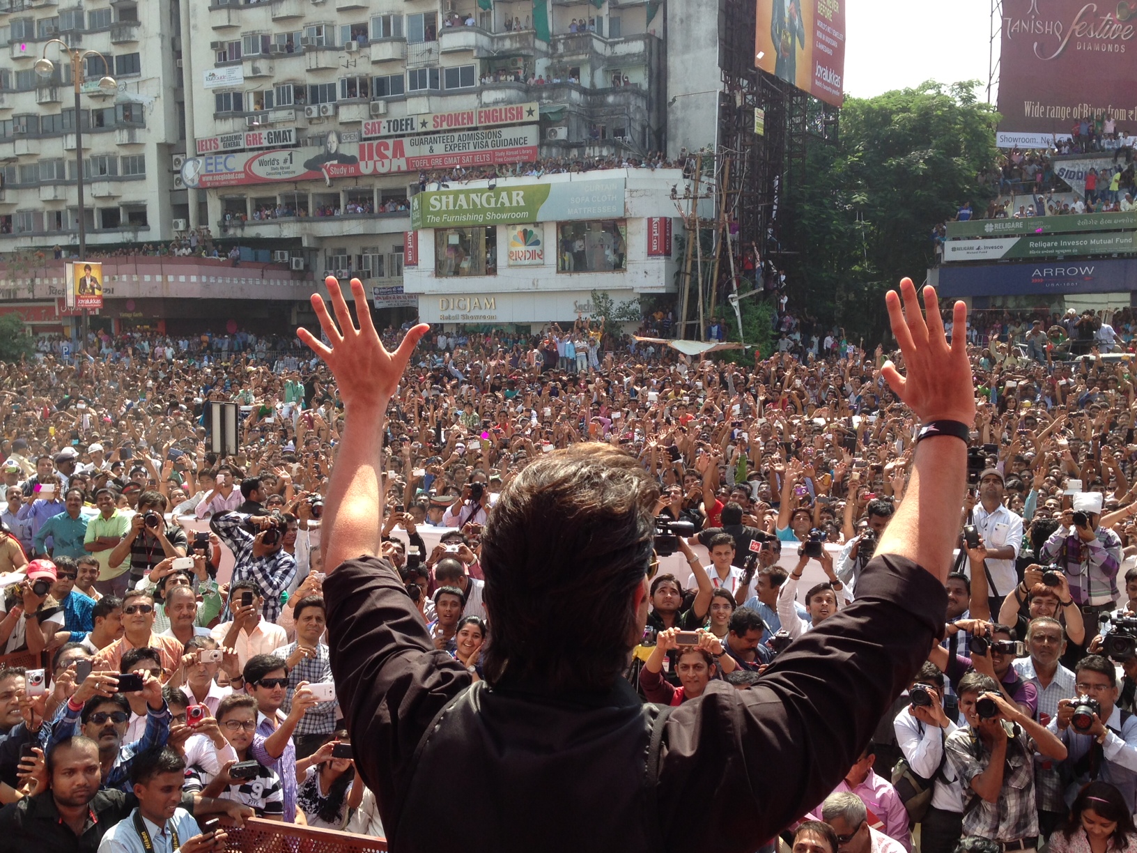 Audiences are in for a triple treat with Krrish 3 as India’s most critically acclaimed and fan-adorned, multi-faceted artist, Hrithik Roshan, will be seen playing a triple role in the film, that of Rohit (Krrish’s father), Krishna (alter ego of Krrish) and Krrish (the superhero). Will Krrish be able to compete like the rest of the superhero films? Hrithik Roshan also toured into Baroda that the crowd was so massive, security was unable to cope! Check out the photos below from the tour in Baroda!