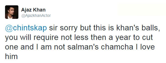 Ajaz Khan originally tweeted, the following but after getting a lot of negative remarks it seems the took down the tweet:
