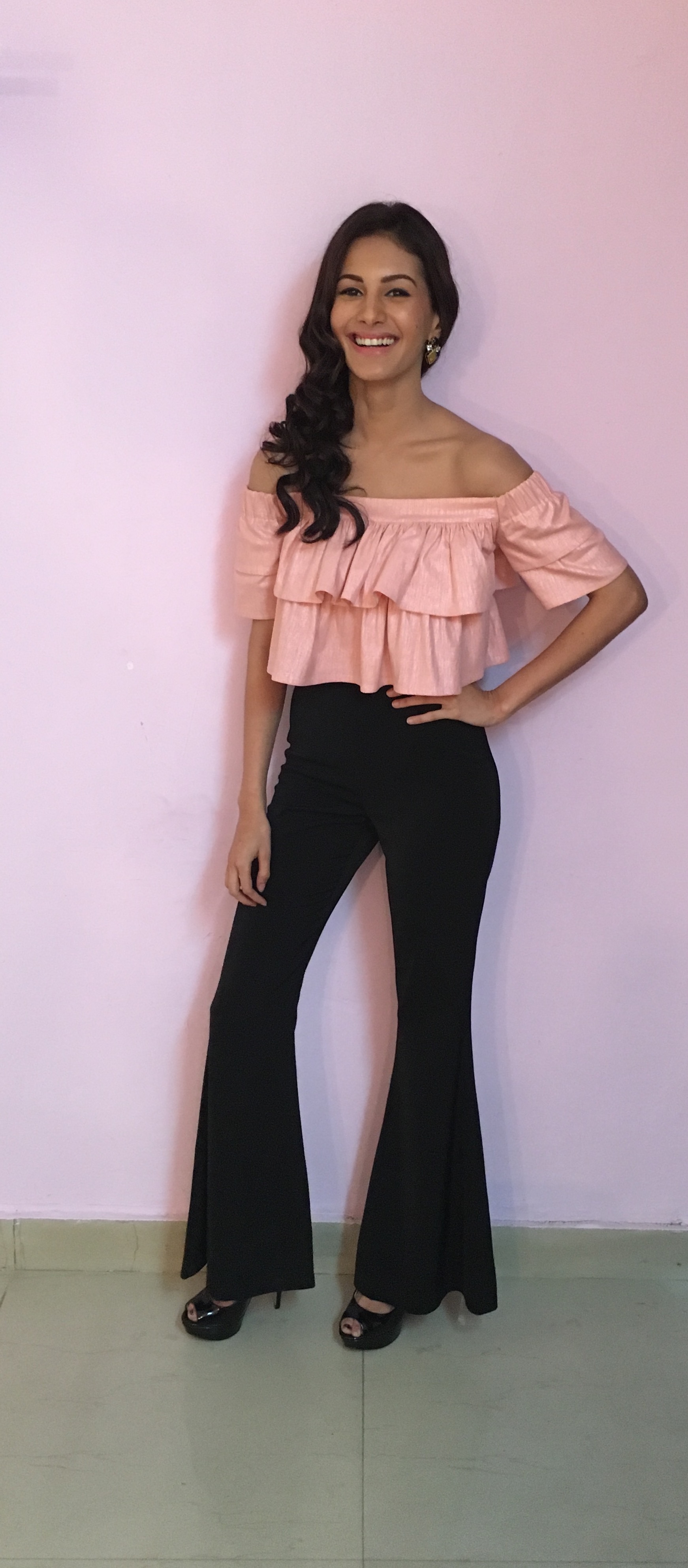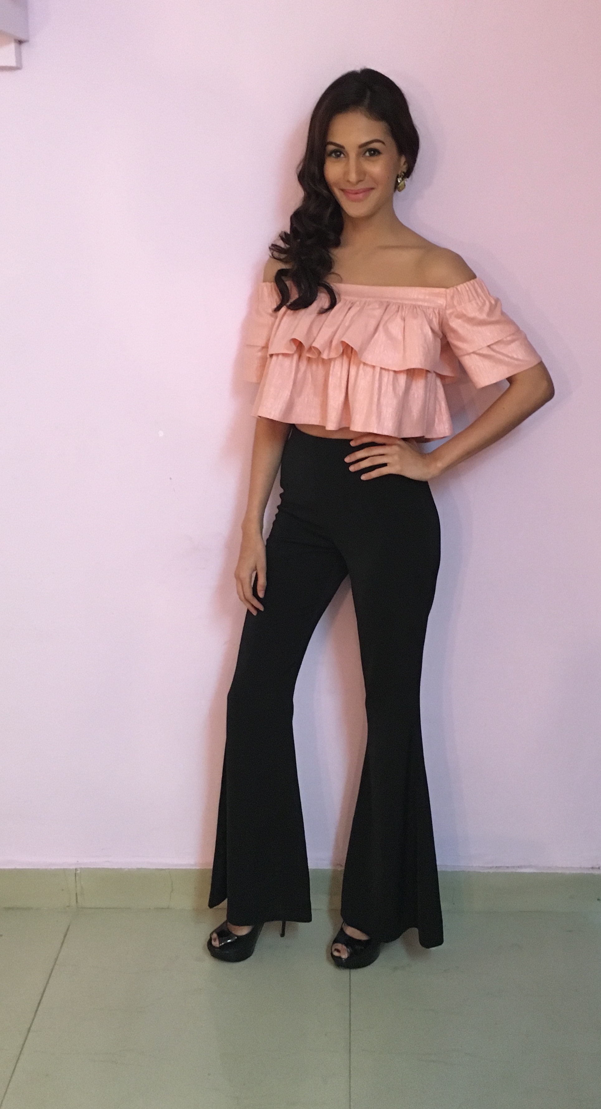 Amyra Dastur, recently spotted sporting a quirky look by designer Madison. Paired with Aldo shoes, the pretty in pink top was definitely an on-trend number while the pants not so much. We would have preferred her in a high-waisted black pant or skinny jean.
